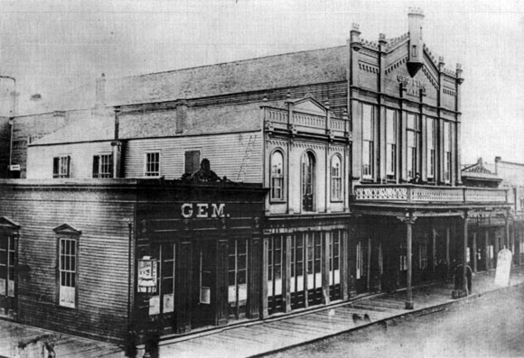 This photograph shows Portland Police Chief Lappeus's saloon and theater, the Oro