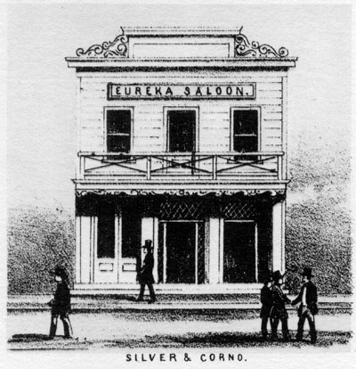 A lithograph of the Eureka Saloon in Portland as seen in the