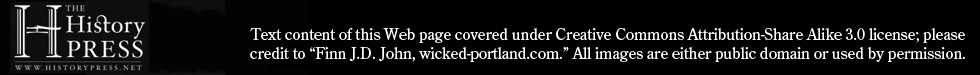 Now remember, as the ladies themselves surely were well aware — Chief Lappeus was also Saloonkeeper Lappeus. In today’s world, this kind of conflict of interest would be outrageous — one saloon owner helping out another saloon owner by arresting a dozen ladies who were clearly doing nothing illegal. In 1870s Portland, though, it was no big thing.