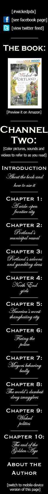 So is this what shanghaiing became in those last desperate years? A secretive, underground thing, practiced with trapdoors in bar basements? Could it be that some of the interconnected basement tunnels in downtown Portland were actually used for this sort of thing? And that reference to the Portland physician suggests another thought: How deeply involved in this flesh trade were Portland’s VIPs?
