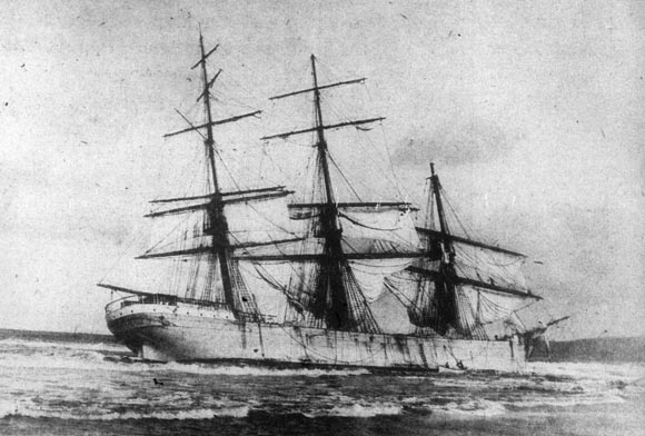 The fate of the T.F. Oakes: The notorious "hell ship" went aground at Half Moon Bay in California in March 1898. By then it had been renamed "New York," perhaps in an attempt to lose the reputation for brutality and starvation that it had acquired under its earlier name. (Image: Portland Morning Oregonian, Nov. 26, 1933) [Click here to read a PDF of the Oregonian article on the Oakes' demise]